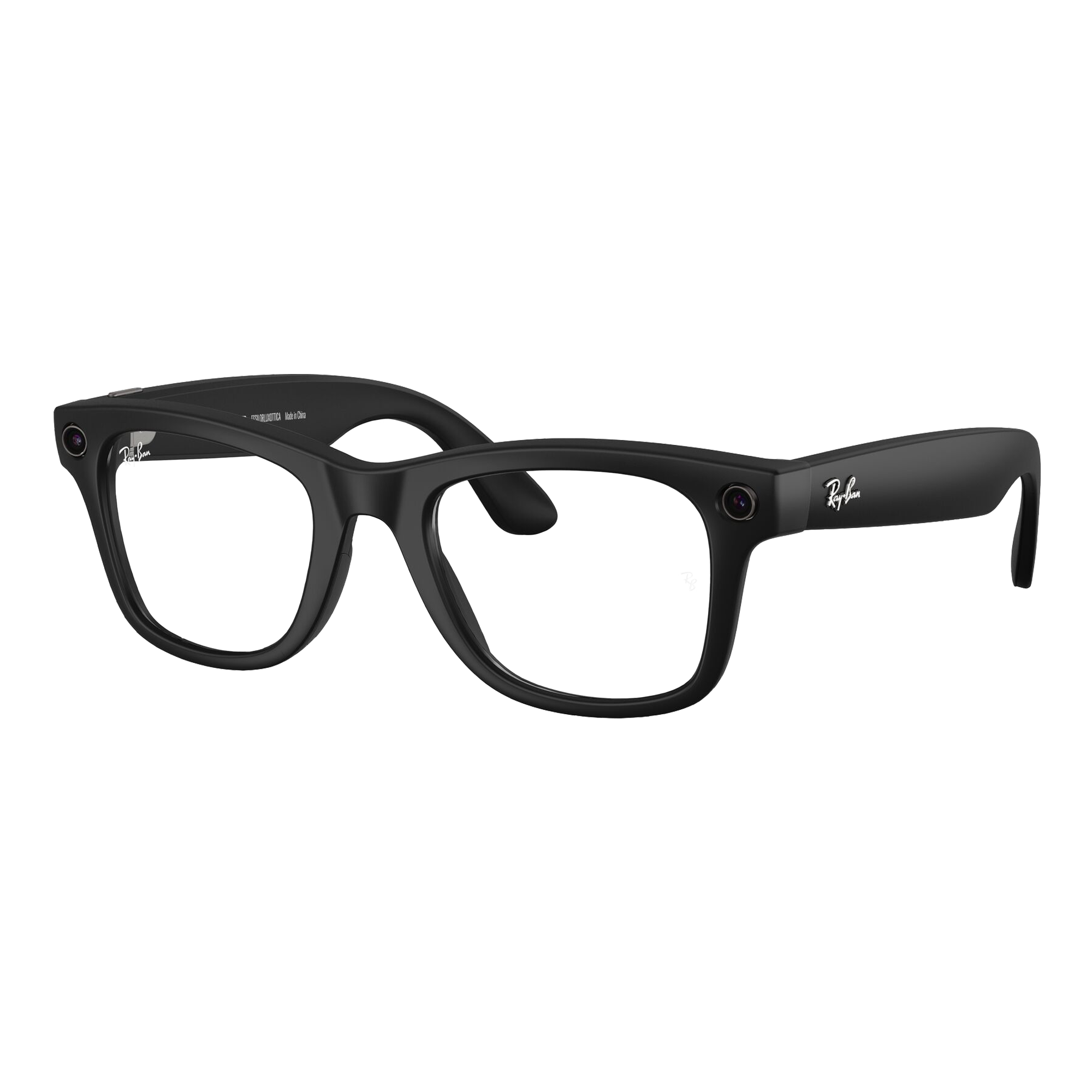 Iconic frames that stop a room, and technology that lets you move effortlessly through it. A style pioneer from Hollywood to hip-hop, the Wayfarer never stands still. Forever embraced by the next generation of culture makers, now its journey continues with advanced Meta AI. Capture photos and videos, listen to music and podcasts, make a call, translate in real time, even send a text on the fly - all without taking out your phone. Eye size: 50; Frame: Matte Black; Lens: Clear/Blue-Violet Light Filter; Lens Material: Standard Plastic
