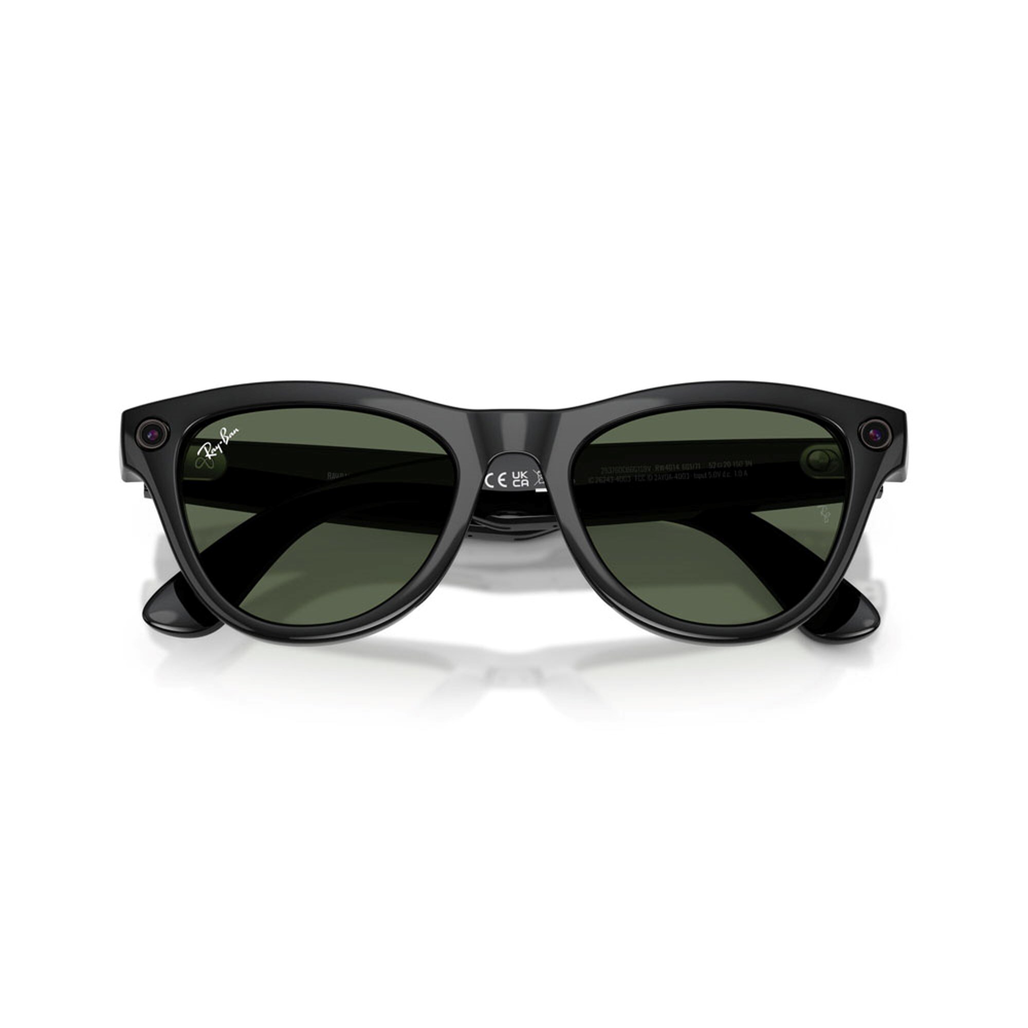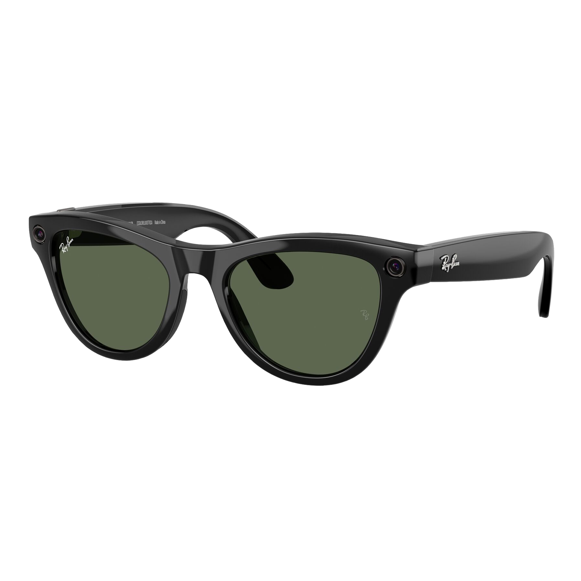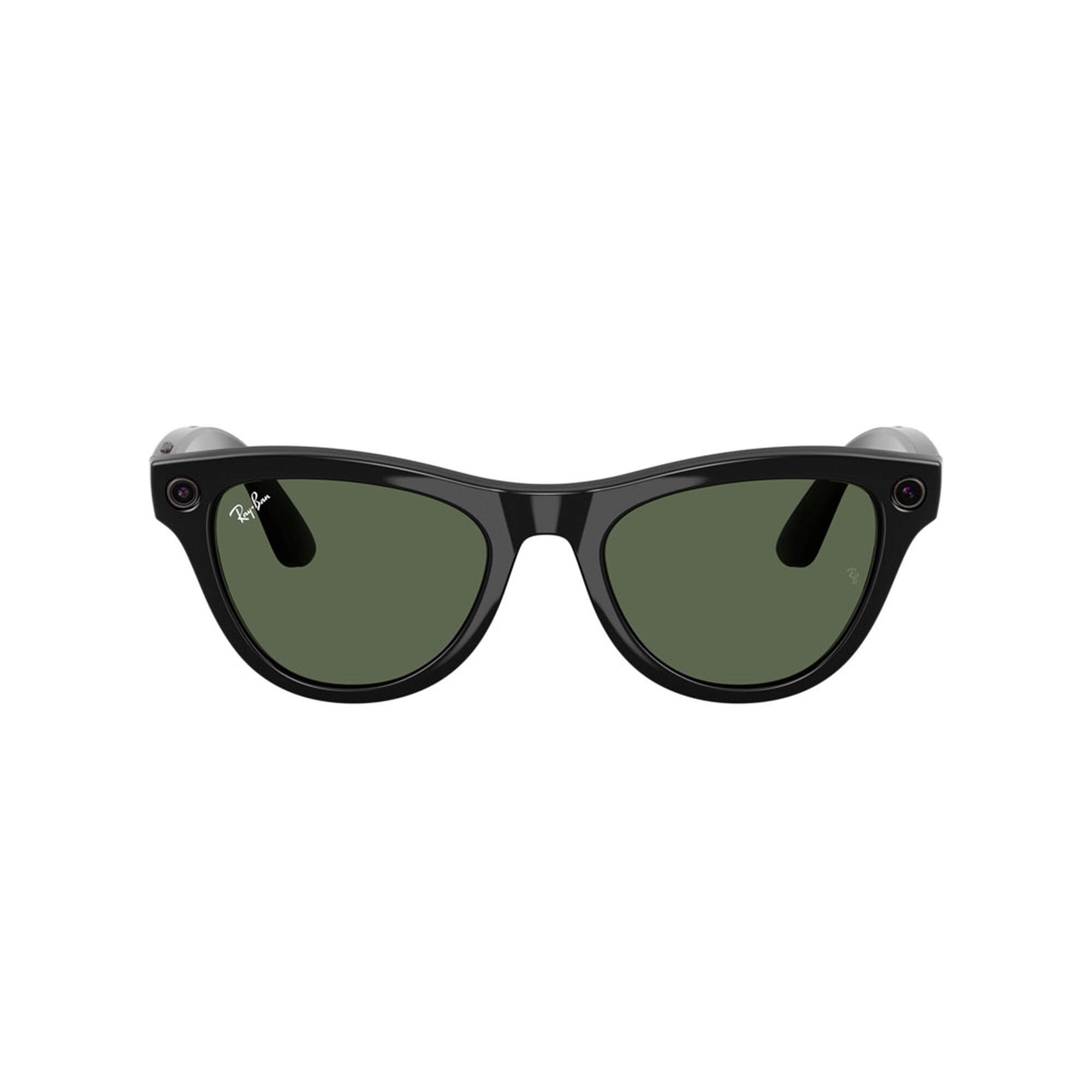 Tap into iconic style and advanced technology designed to help you move effortlessly through life. Drawing on our 60s archive and the Golden Age of air travel, the Skyler shape is inspired by an era of iconic jet-set style. Now with advanced Meta AI, capture photos and videos, listen to music and podcasts, make a call, translate in real time, even send a text on the fly - all without taking out your phone. Eye size: 52; Frame: Shiny Black; Lens: G-15 Green; Lens Material: Standard Plastic