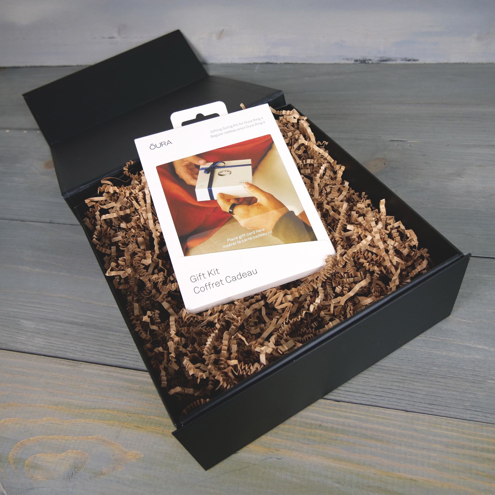 Align Your Oura elevates wellness gifting with the Oura Ring. Paired with our sleek small black magnetic-closure kitting box and finished with kraft crinkle paper, this premium presentation transforms cutting-edge health technology into a refined, ready-to-gift experience. Perfect for executive programs, incentives, and high-impact brand moments. *Pricing based on the Brushed Silver option.