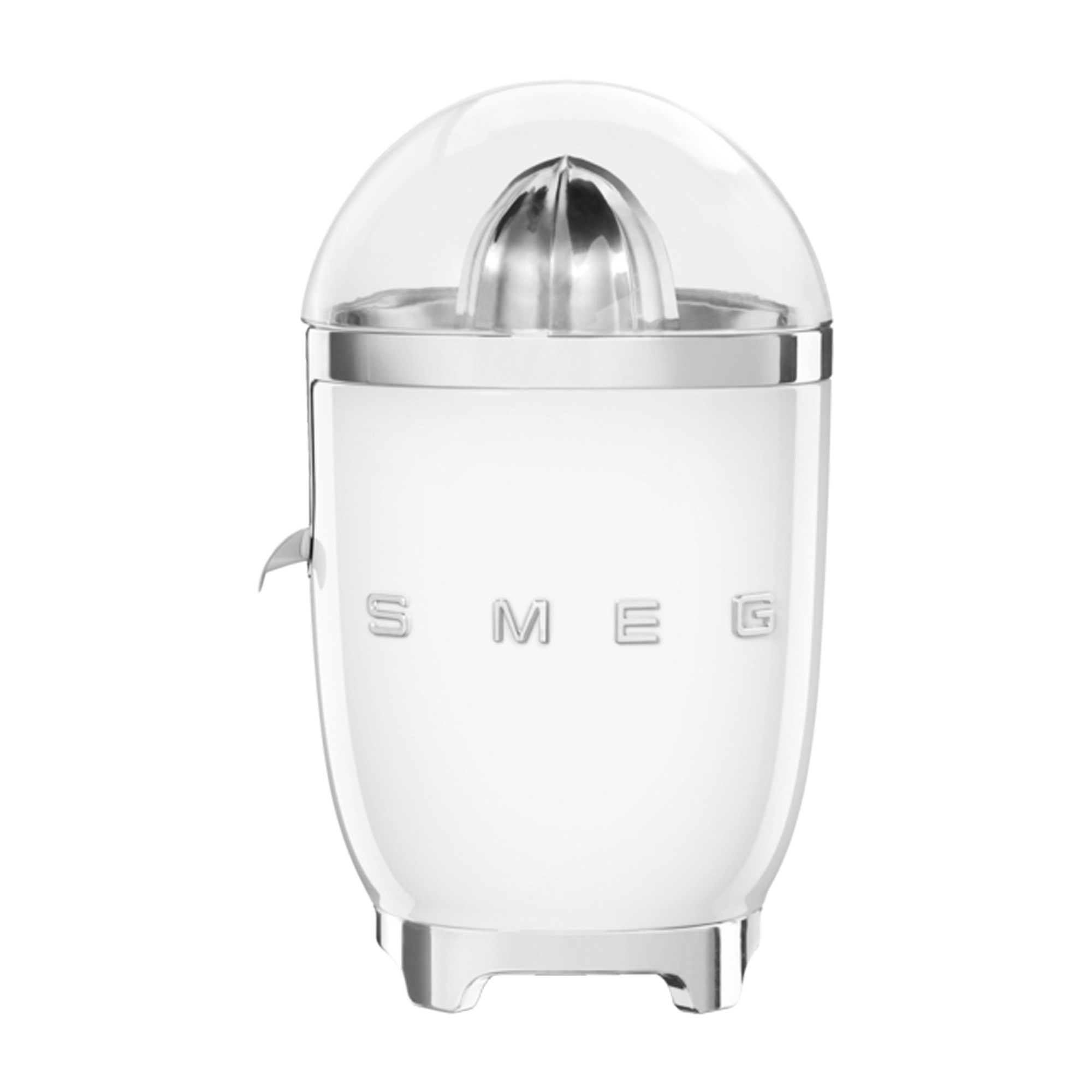 SMEG's electric citrus juicer combines elegant design and superb performance with reliability. This citrus juicer is a great addition to the kitchen, making it more inviting and offering a sense of well-being from savoring a delicious fresh citrus juice. SMEG's citrus juicer is equipped with a powerful 70W motor and an integrated on-off sensor. It includes a stainless steel dishwasher-safe reamer and strainer. When not in use, the citrus juicer is complete with a Tritan Renew lid.