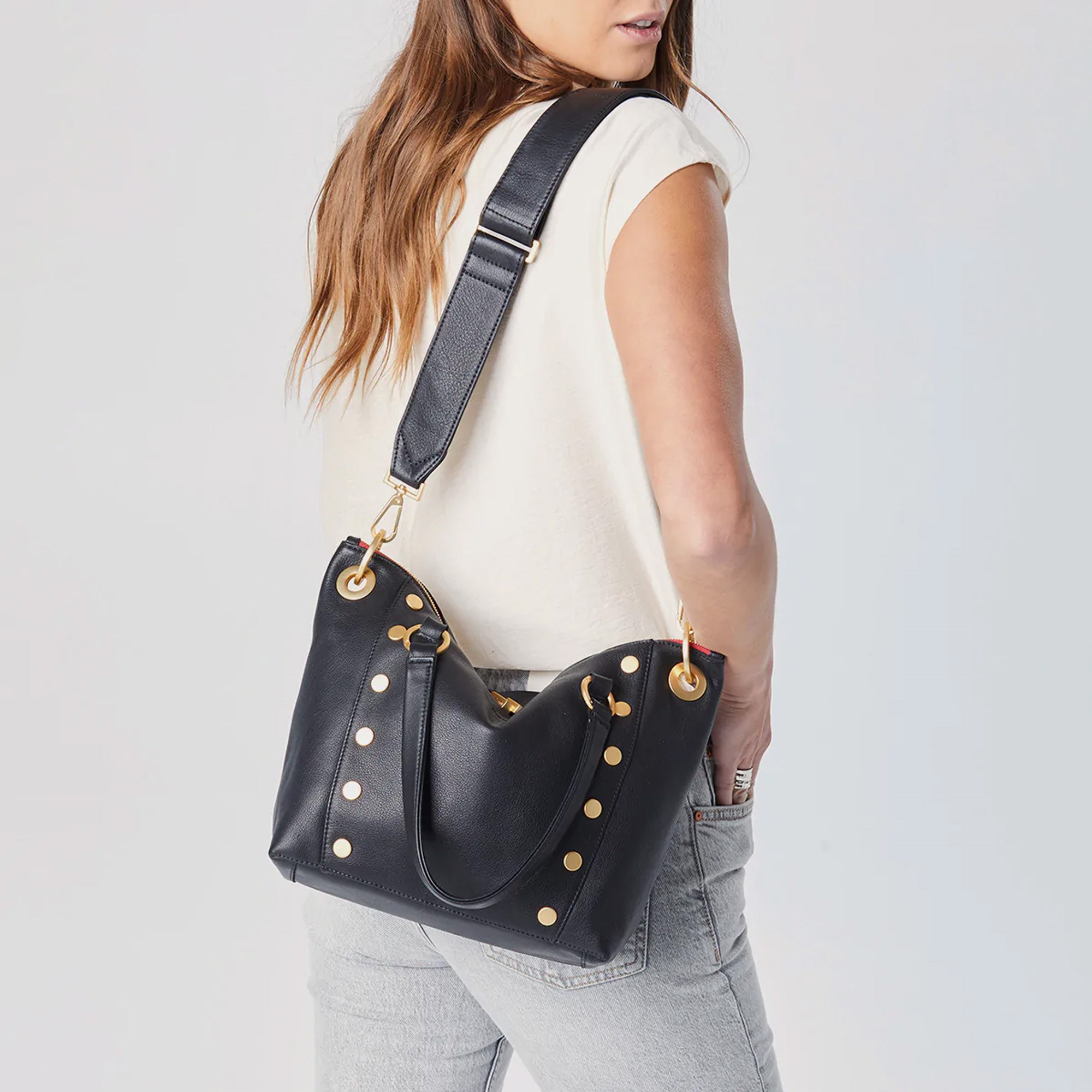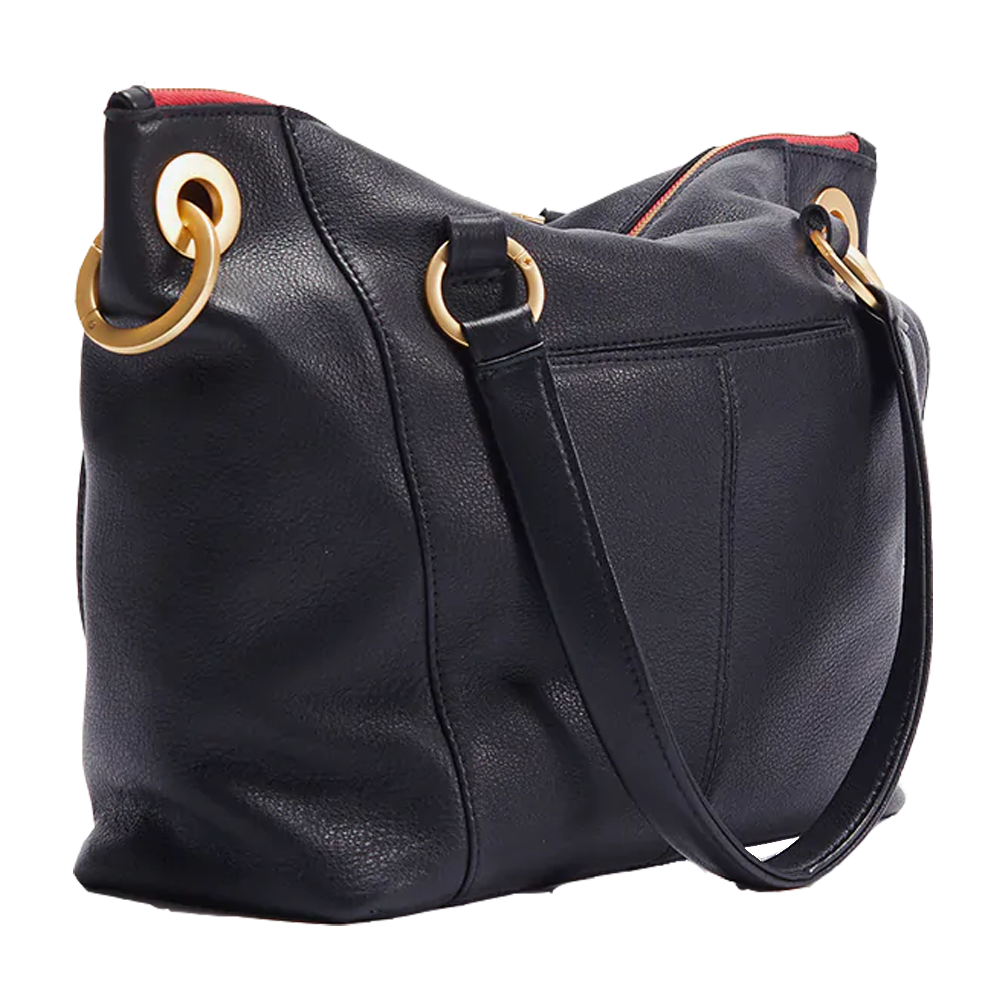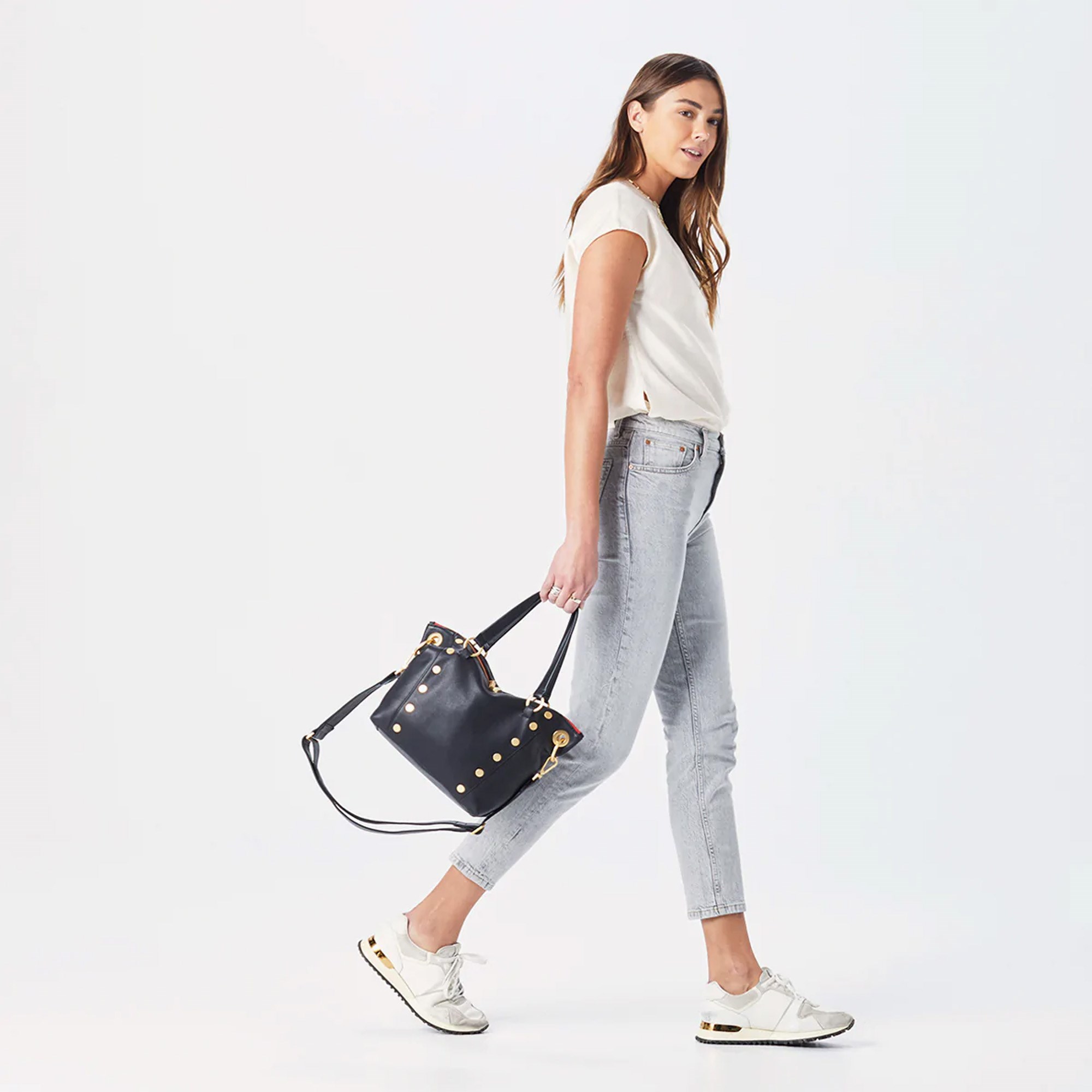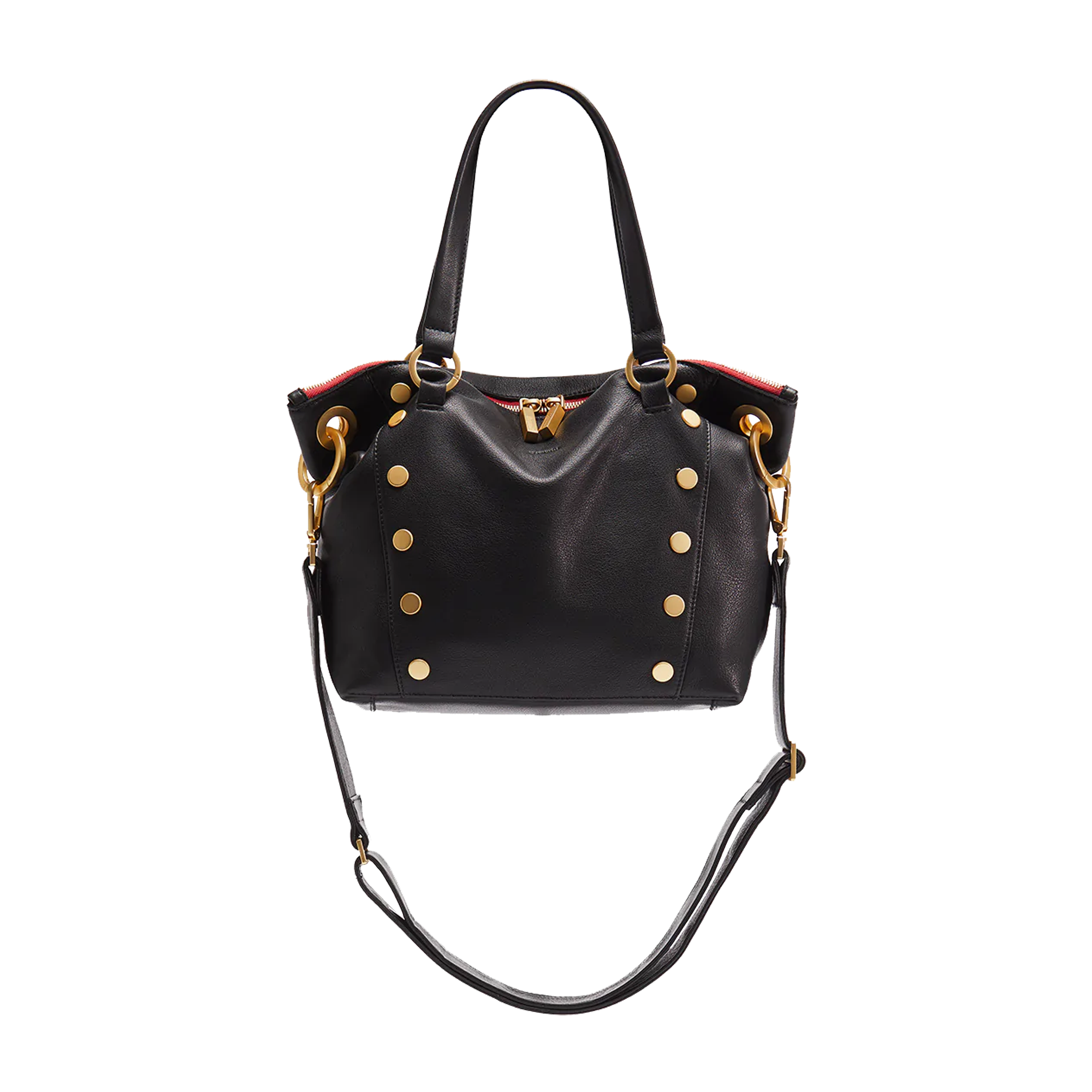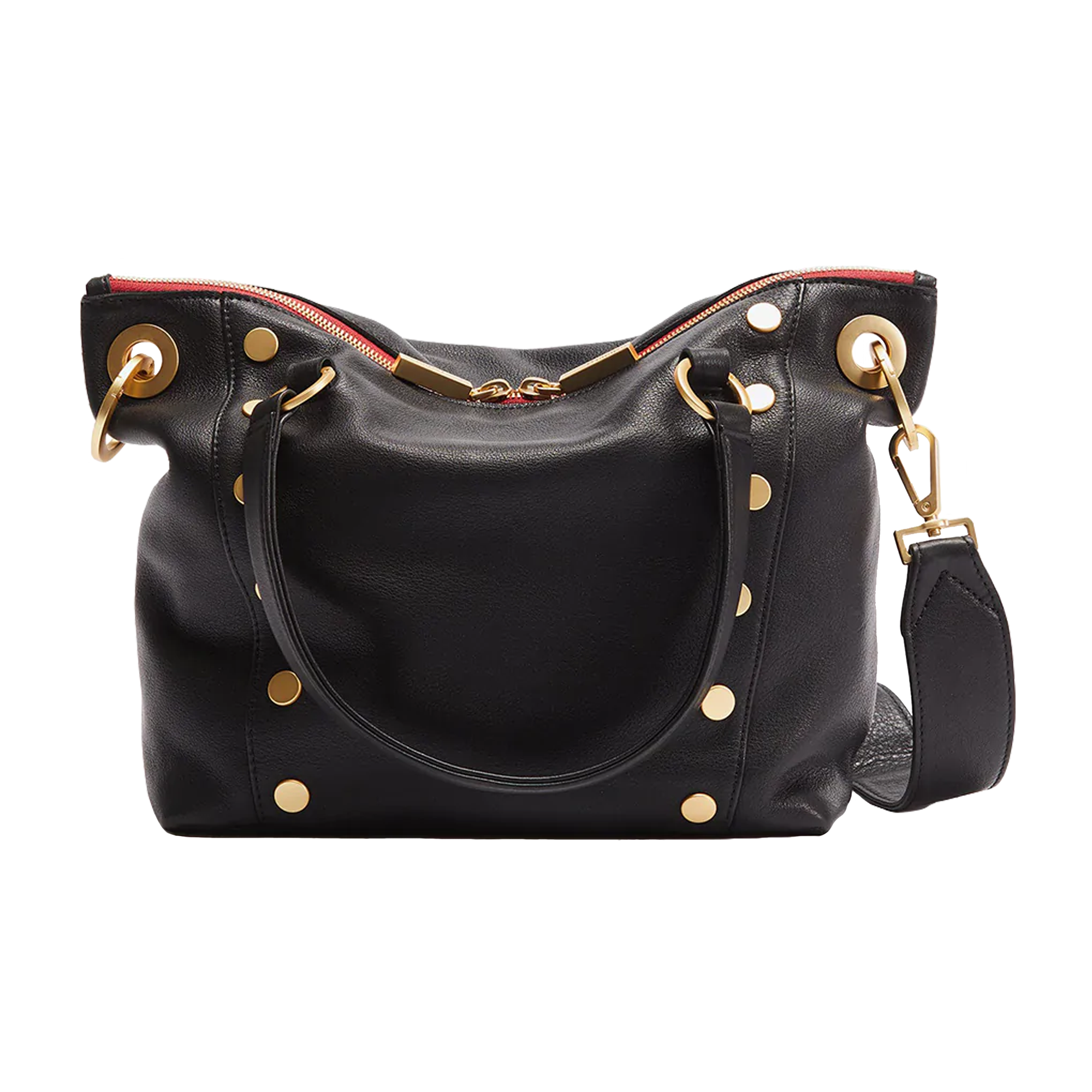 Get down to business with this petite take on our classic Daniel satchel. Crafted with additional rivets, a double zippered pocket, three interior drop pockets and reinforced hardware, the revamped Daniel is ready to take on your busy calendar. Ready to set a meeting? Color: Black/Brushed Gold Red Zip
