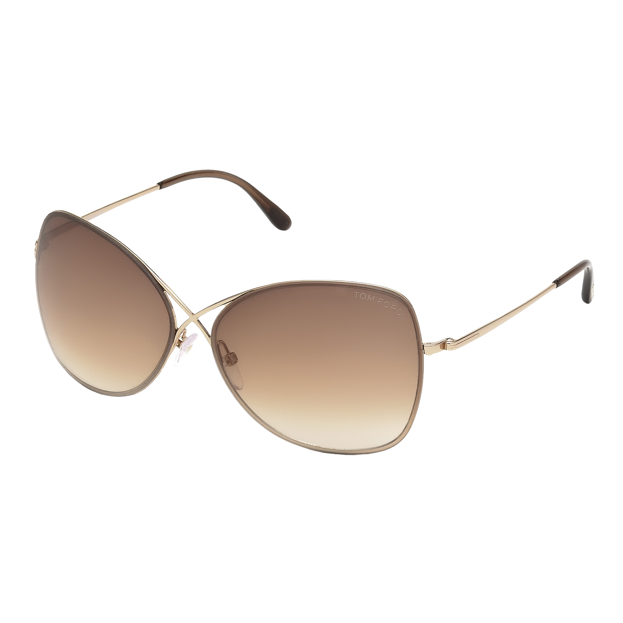 The Tom Ford Colette sunglasses for women exude effortless elegance with a refined butterfly shape and sleek metal design. Featuring the iconic cross detail and rotating 'T' accents, they offer a chic, modern look with lightweight comfort for everyday wear. Shiny Rose Gold frame with Gradient Brown lens