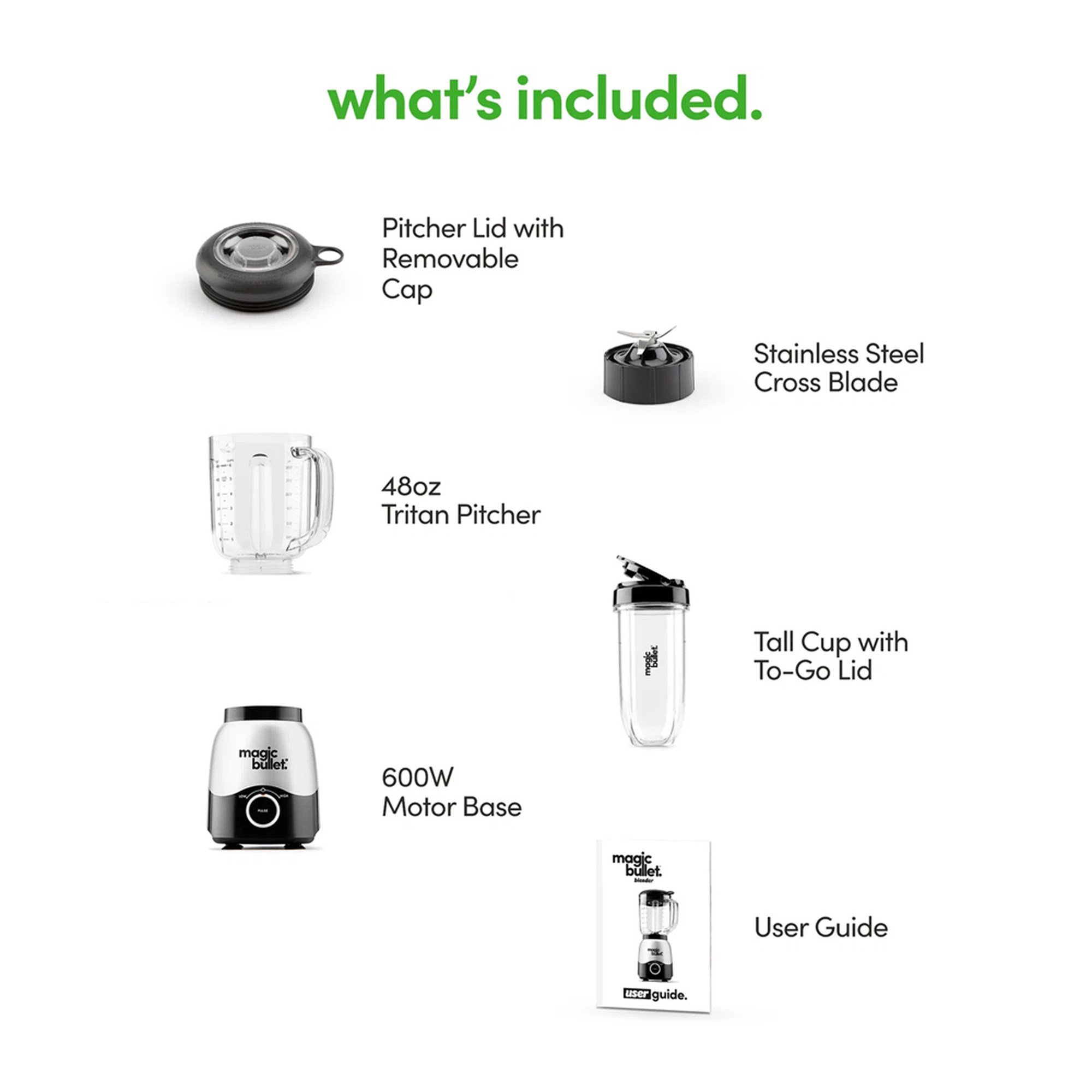 Whether you're blending a single-serve smoothie or frozen drinks for a crowd, the magic bullet Combo Blender has your back, with a 20oz blending cup, a 48oz pitcher, and one 600-Watt motor base (the most powerful of any magic bullet) that powers both. It's also easy to use, with a simple dial that gives you full control over the speed and duration of your blends.