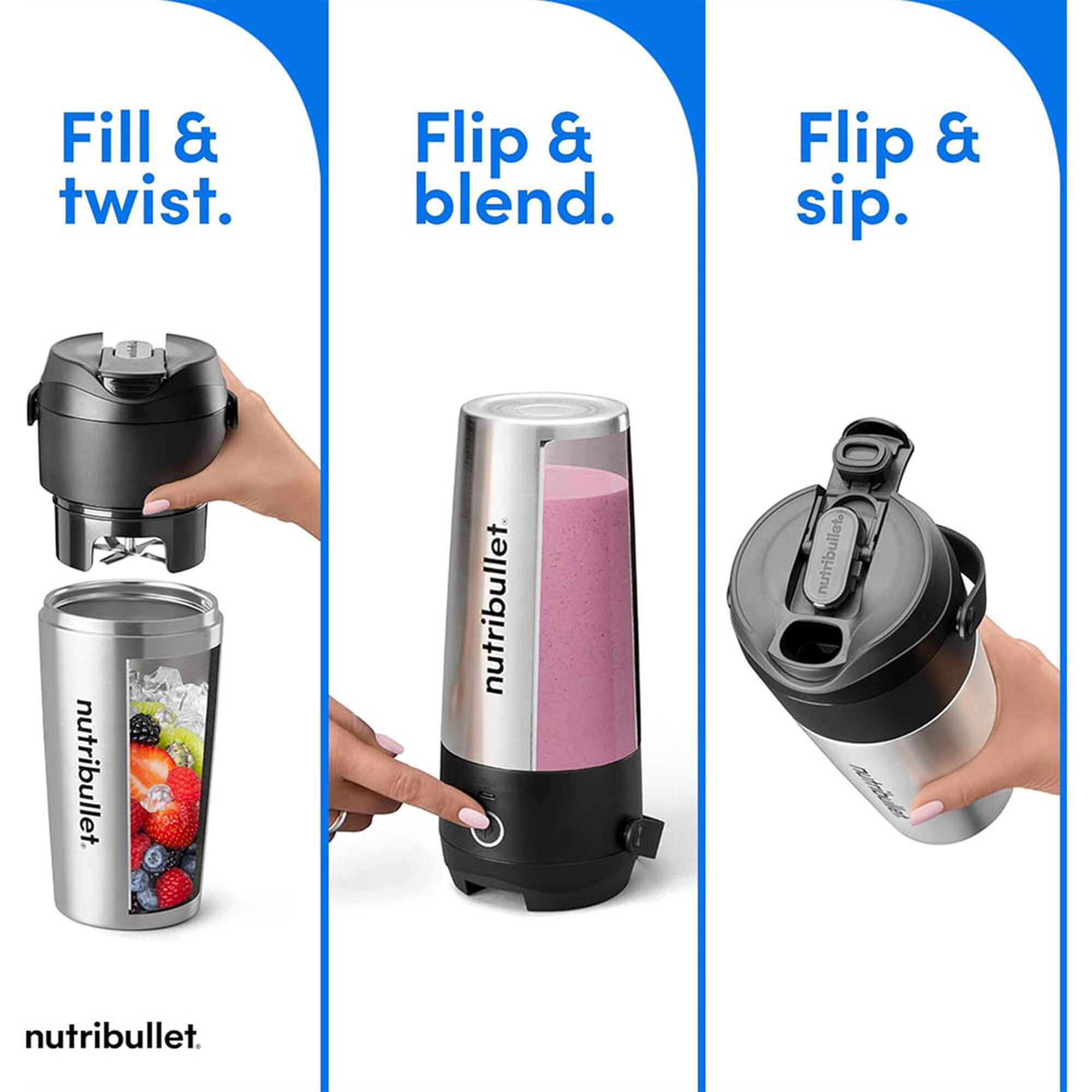 A unique combination portable blender and insulated tumbler, the Flip features a hybrid blade and lid that lets you blend and sip without any disassembly required. Its 11.1V USB-C-charged battery is 50% more powerful than most portable blenders on the market, powering a high-torque motor built to handle your favorite frozen ingredients. Plus, its stainless steel cup keeps contents cold up to 24 hours, making it the perfect companion for road trips, gym sessions, and other thrilling adventures.
